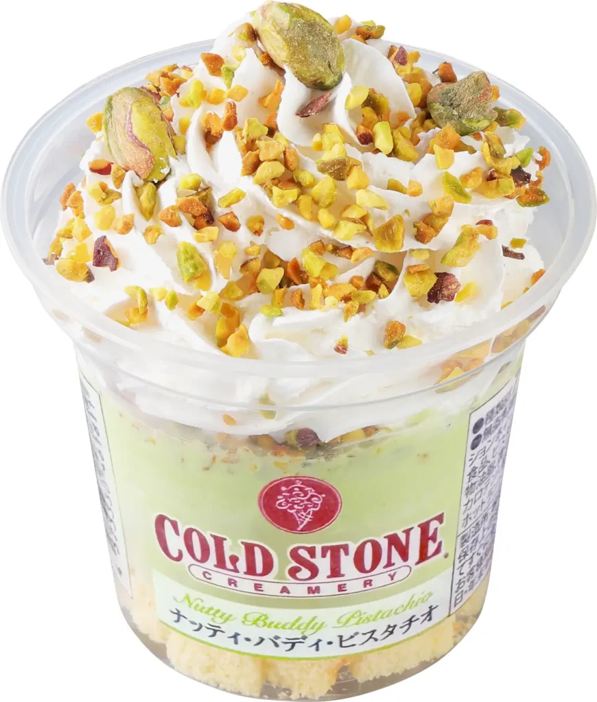 新商品「ナッティ・バディ・ピスタチオ」は、濃厚なピスタチオアイスにクラッシュピスタチオを贅沢にトッピングした一品です。